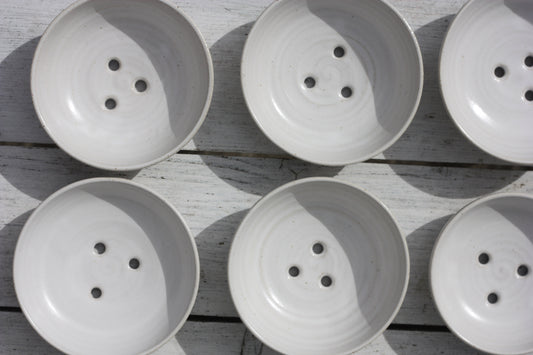 Soap Dish in Soft Pale Celadon Blue and White Glazes