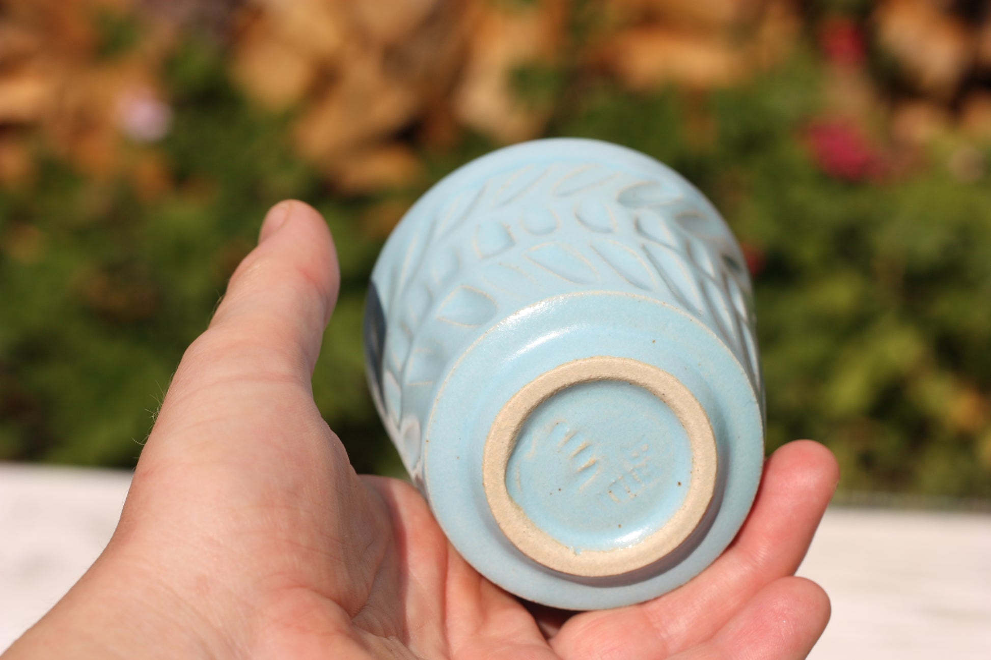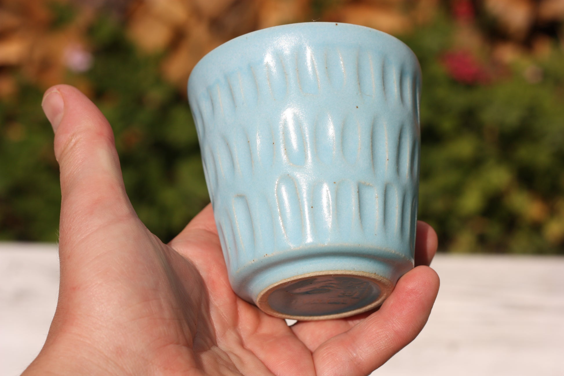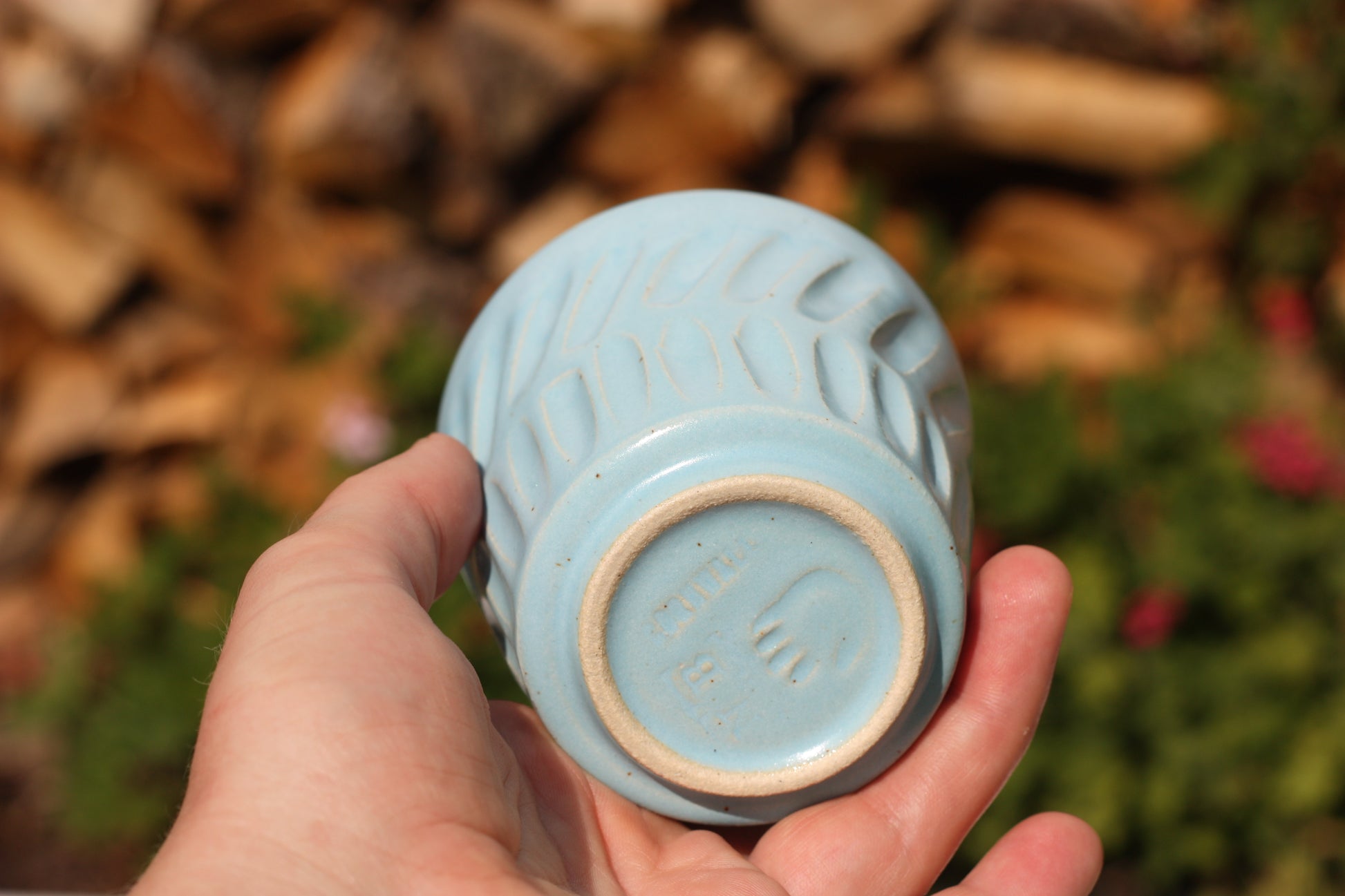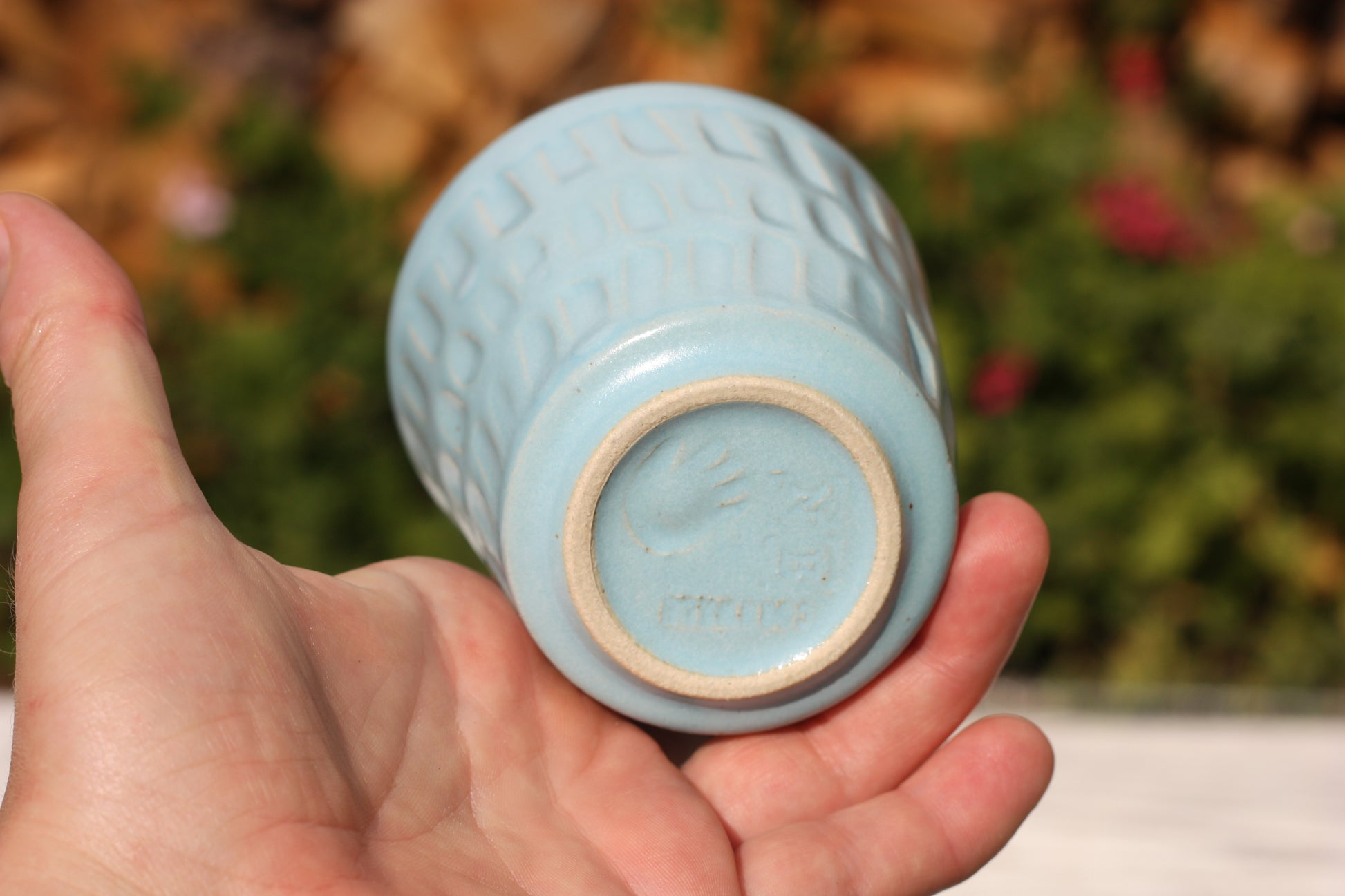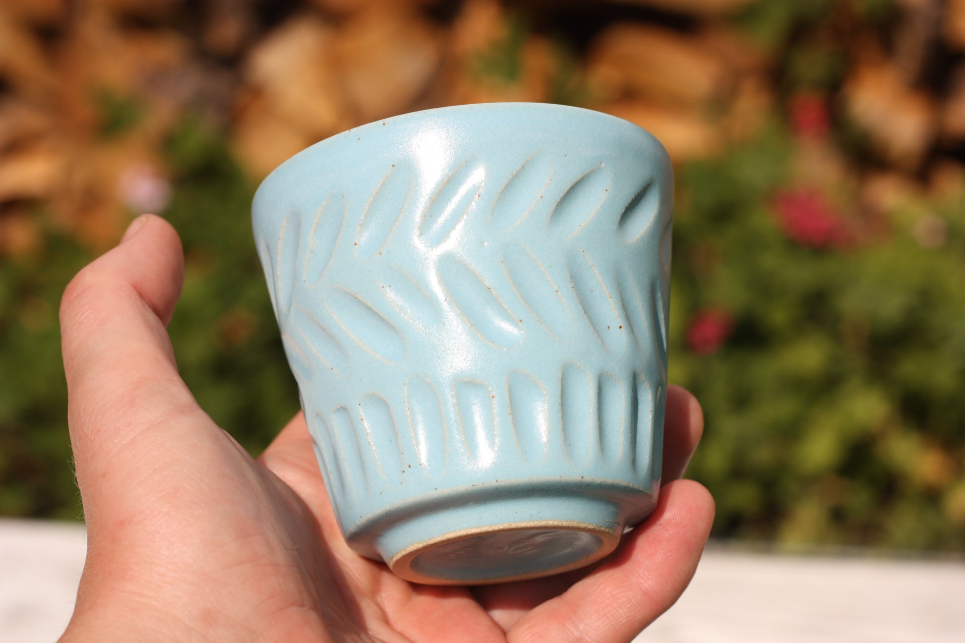 It's been fired to 1240 degrees centigrade and is glazed with a tactile handmade smooth eggshell feel celadon glaze dipped in two different colours.