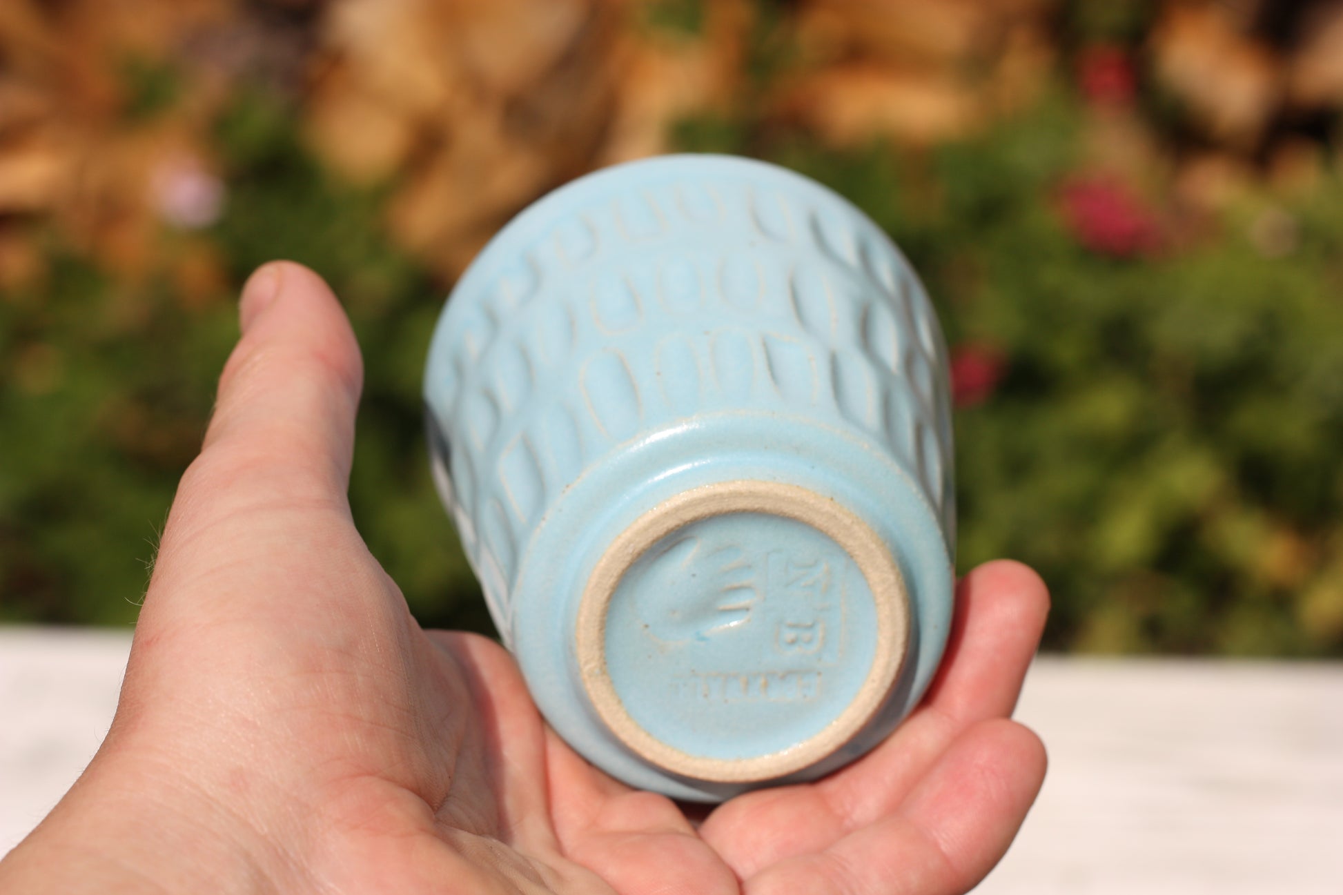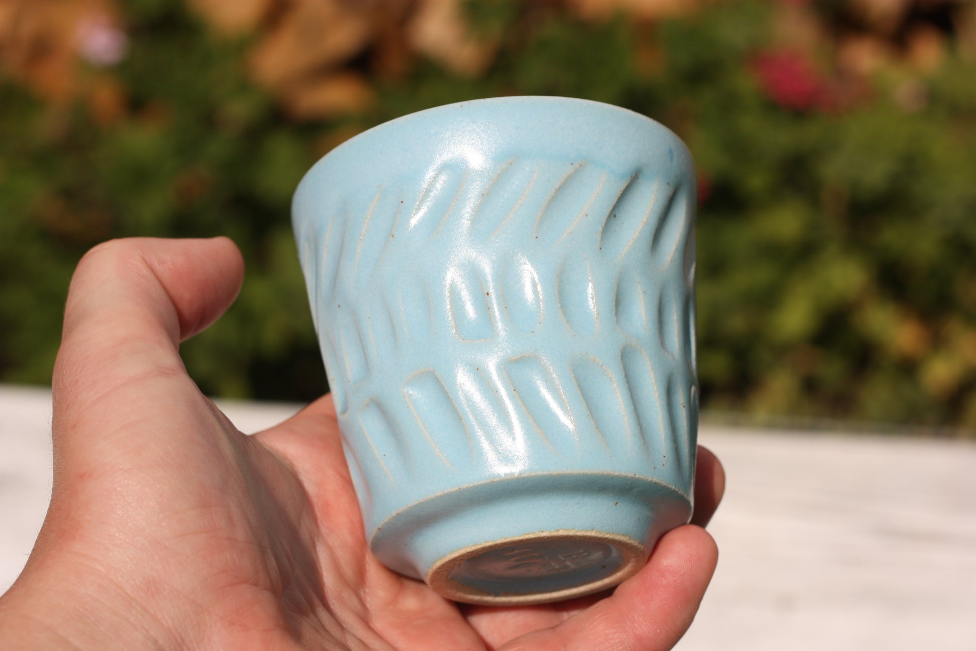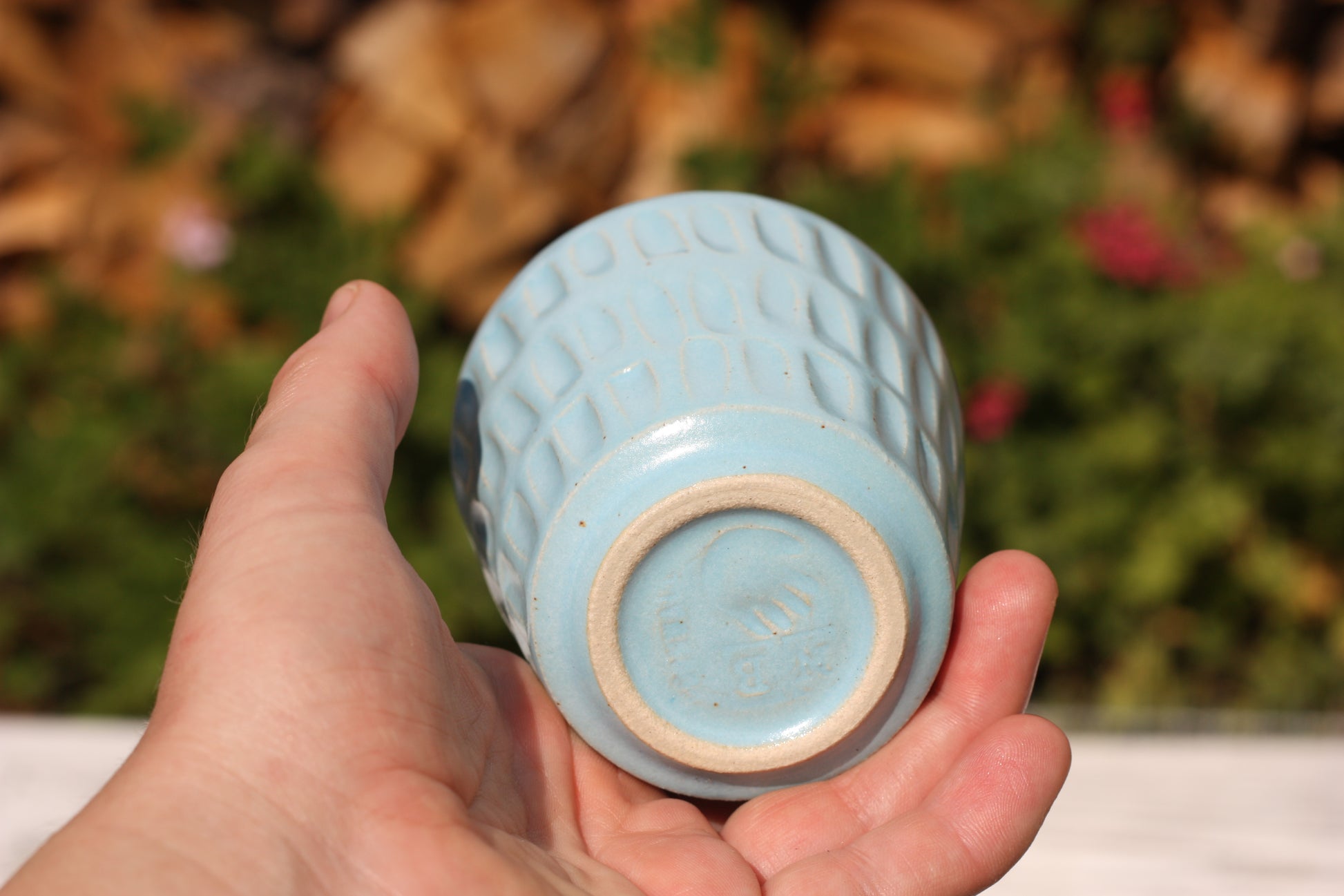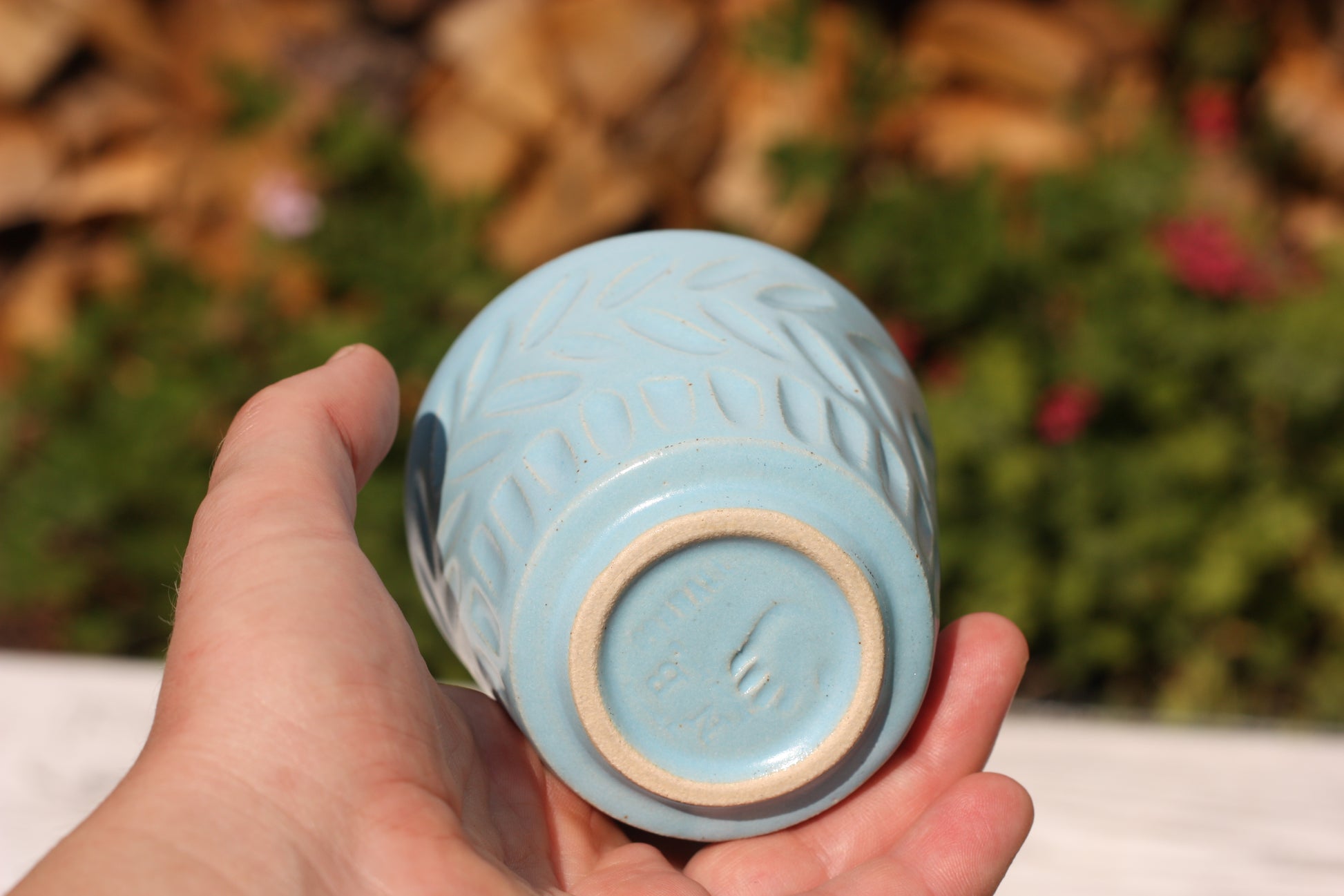 It's been fired to 1240 degrees centigrade and is glazed with a tactile handmade smooth eggshell feel celadon glaze dipped in two different colours.