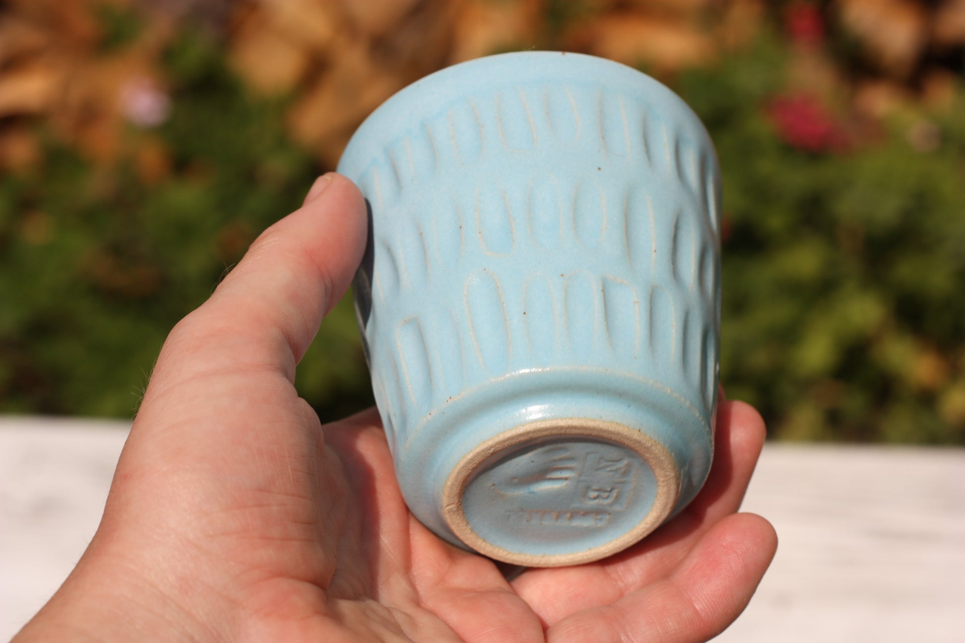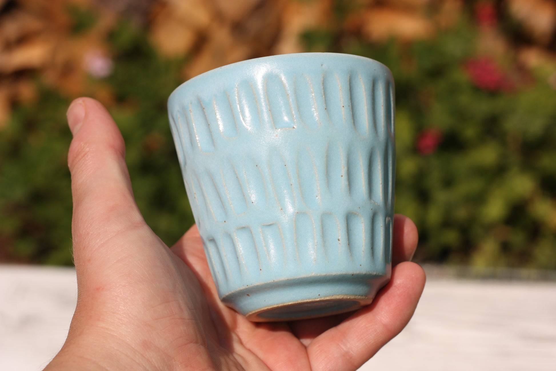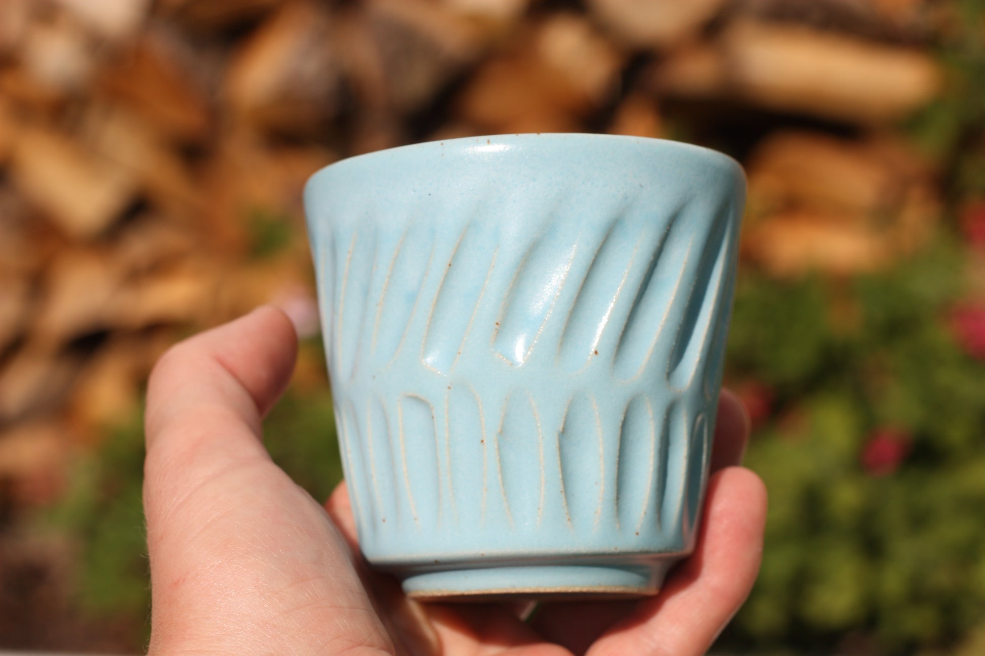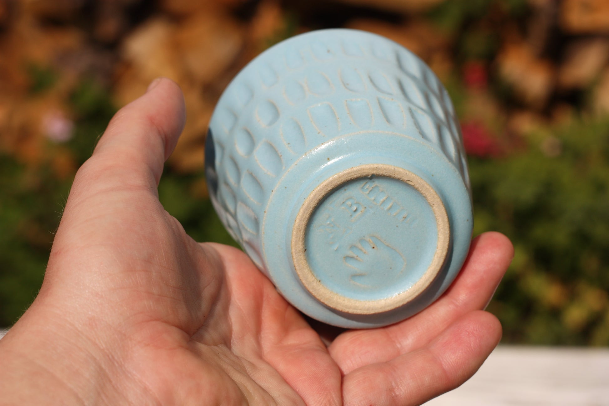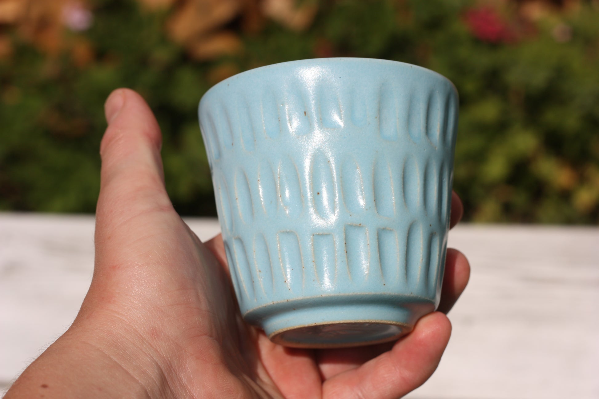 It's been fired to 1240 degrees centigrade and is glazed with a tactile handmade smooth eggshell feel celadon glaze dipped in two different colours.