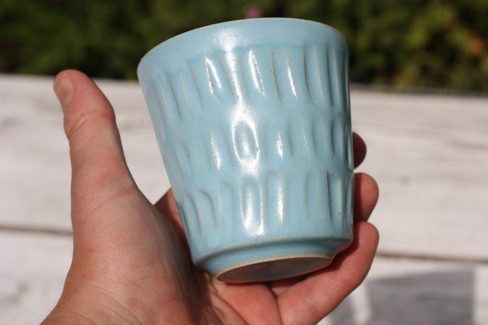 I made this beaker on my wheel using white stoneware clay.