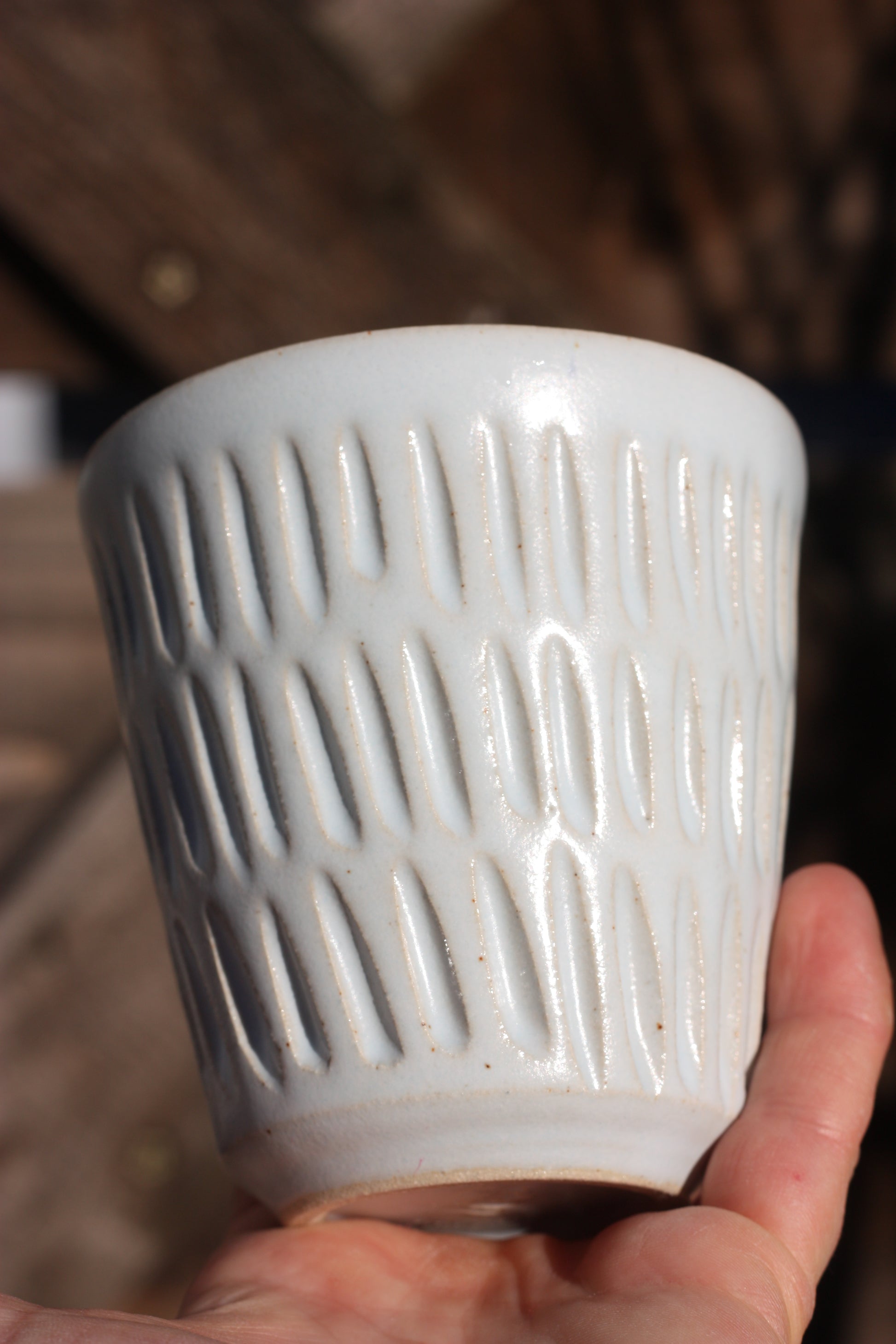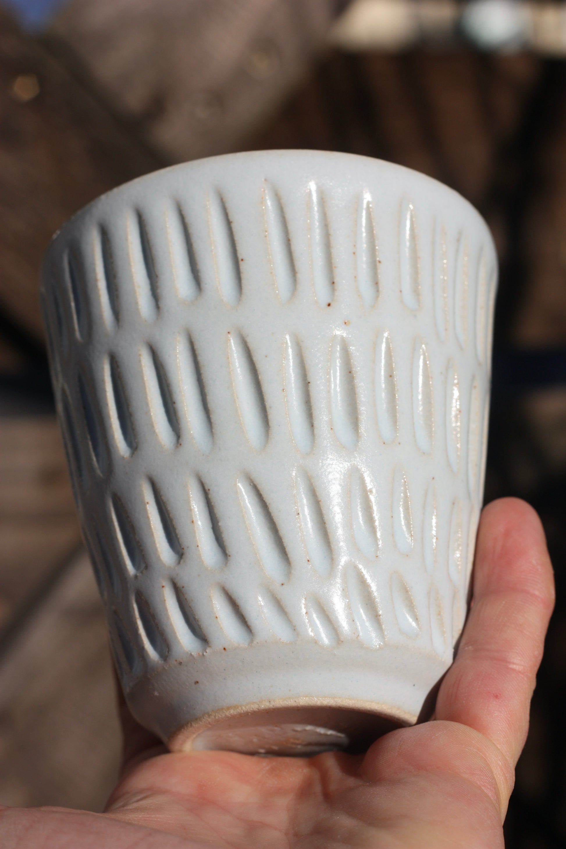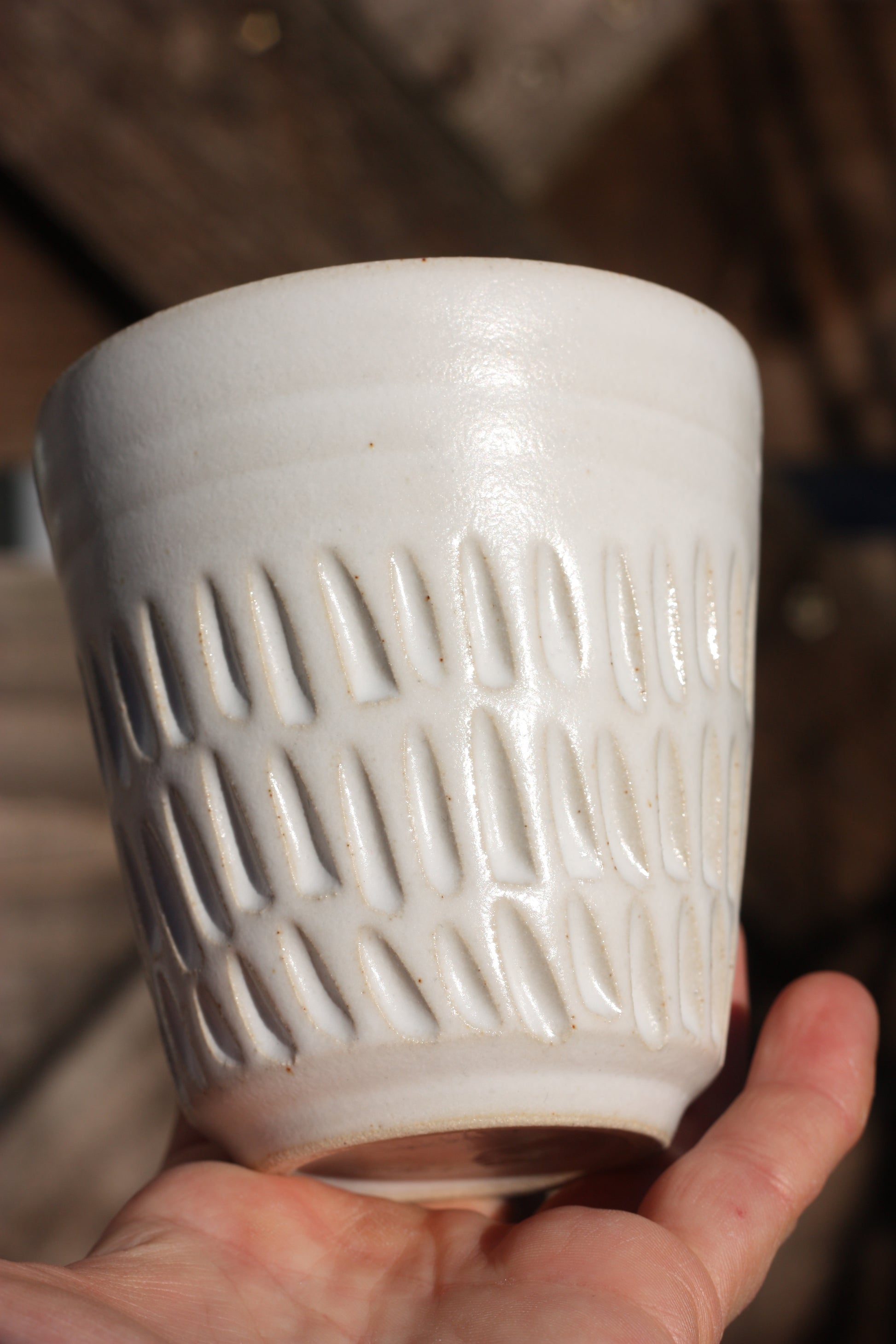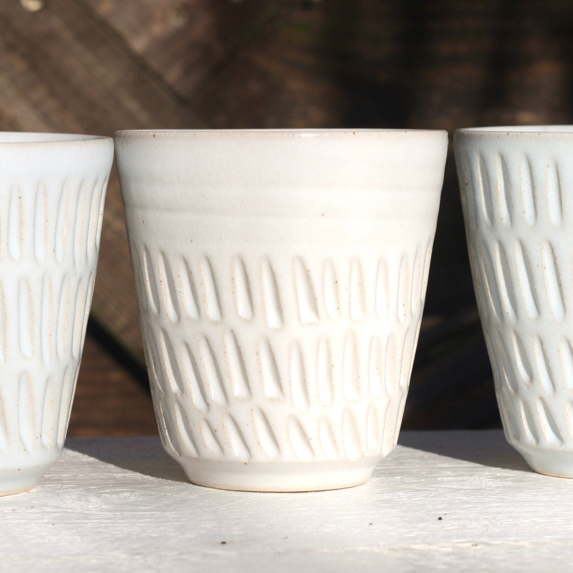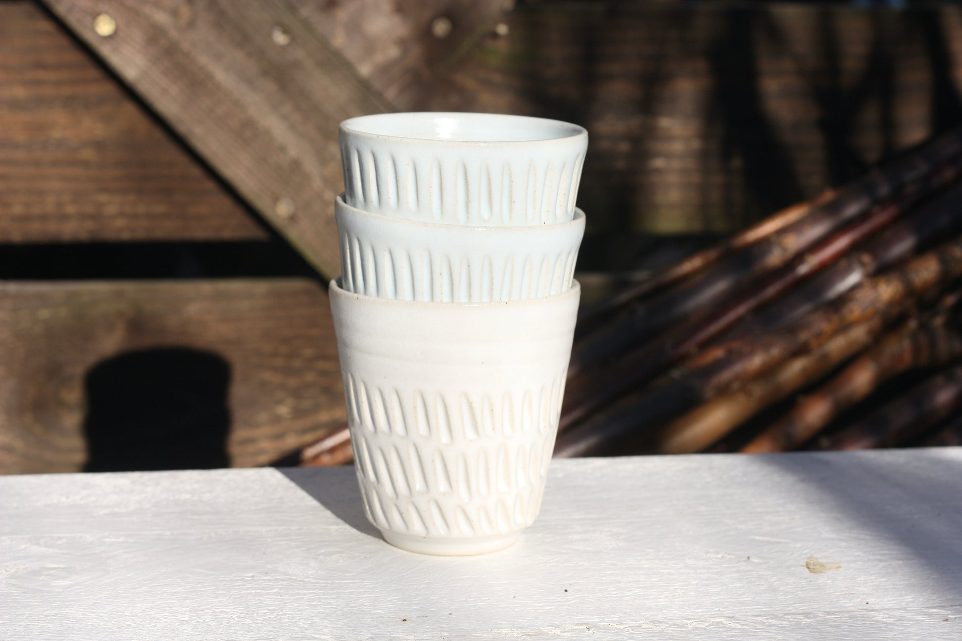 350ml 12 oz Carved Pottery Latte Cup Handle free Mug handmade stacking ceramic cup beaker tumbler