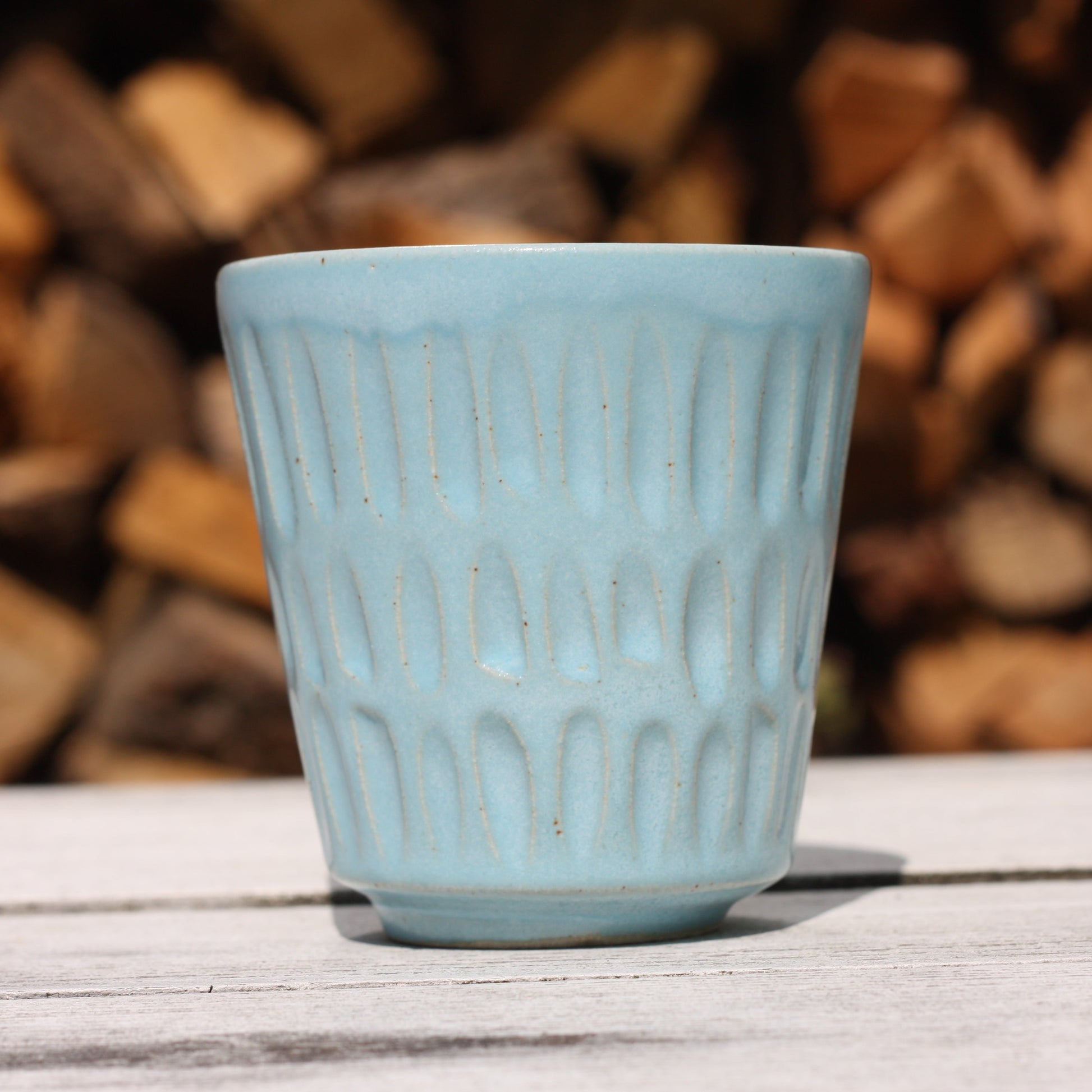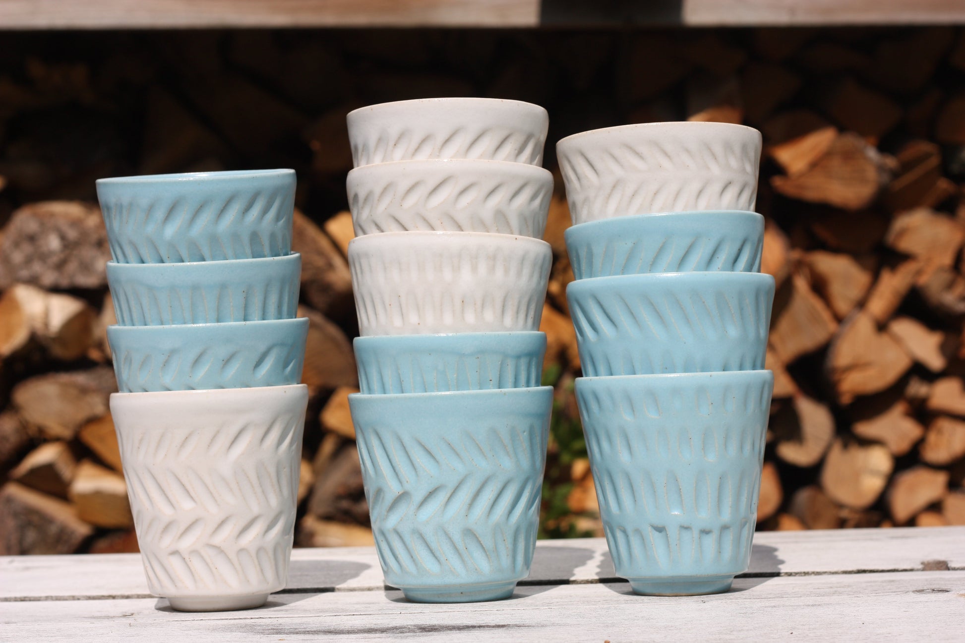 350ml 12 oz Carved Pottery Latte Cup Handle free Mug handmade stacking ceramic cup beaker tumbler E