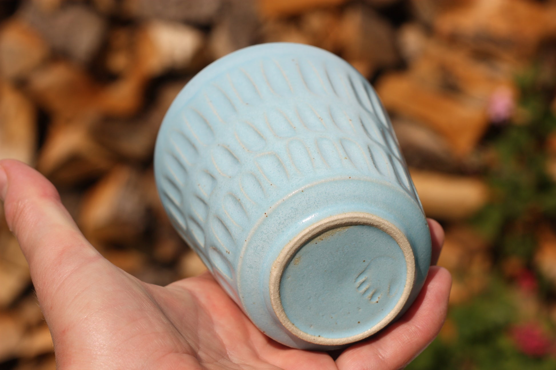 It's been fired to 1240 degrees centigrade and is glazed with a tactile handmade smooth eggshell feel celadon glaze.