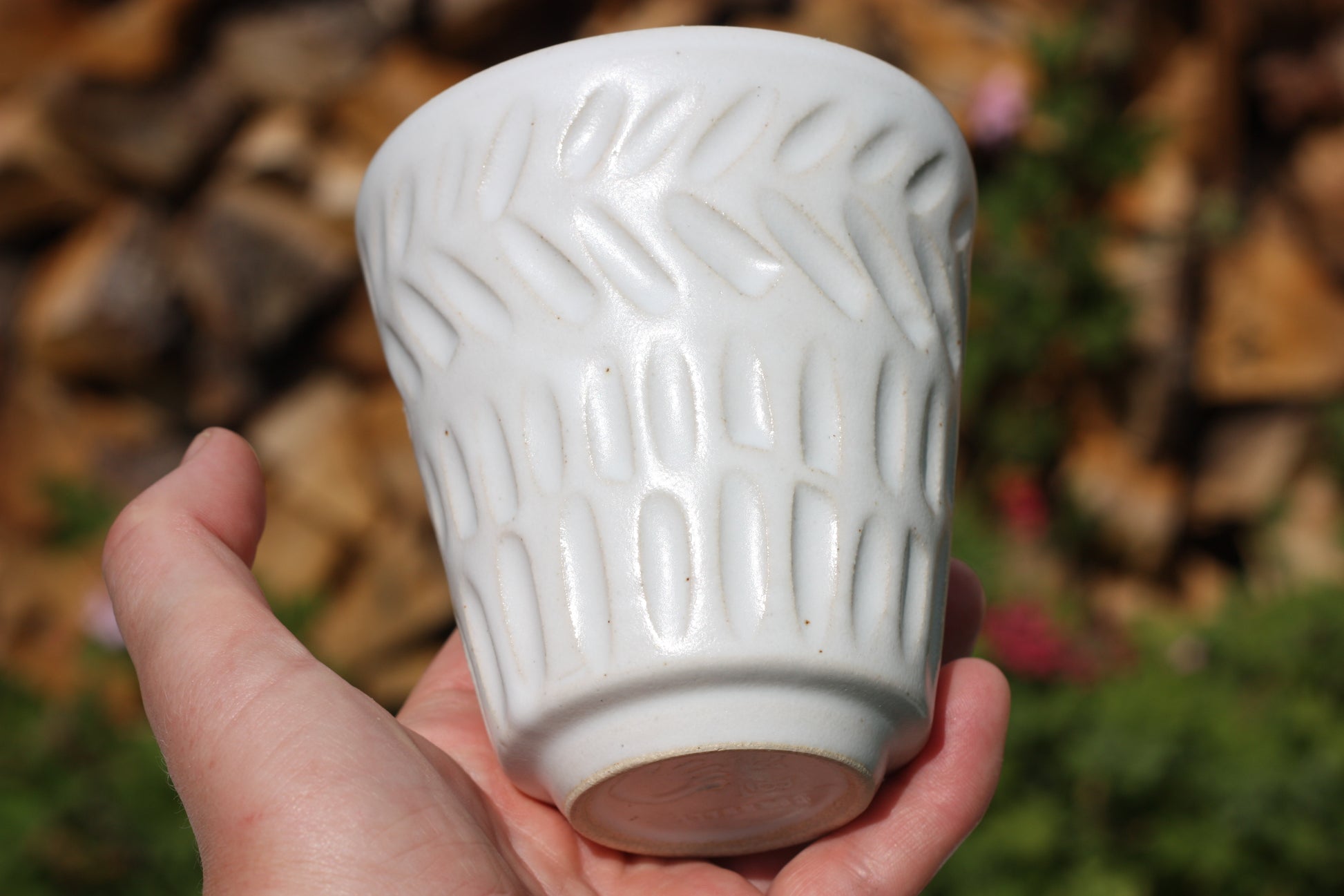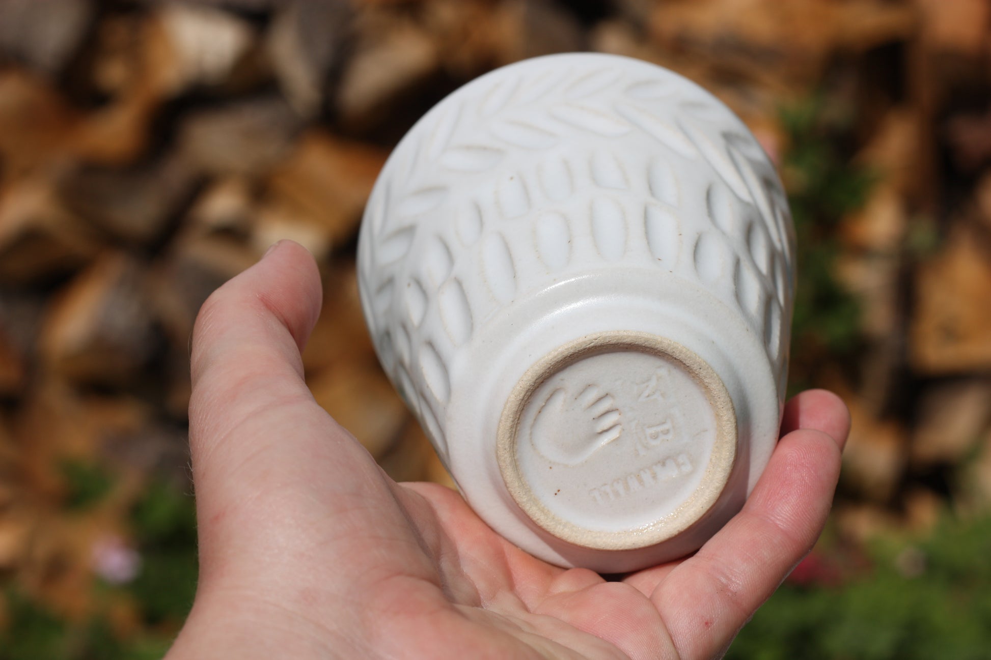 350ml 12 oz Carved Pottery Latte Cup Handle free Mug handmade stacking ceramic cup beaker tumbler K
