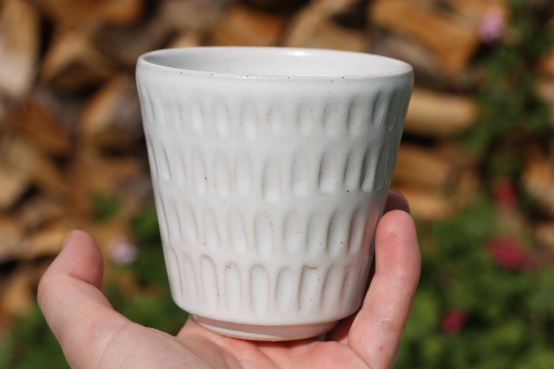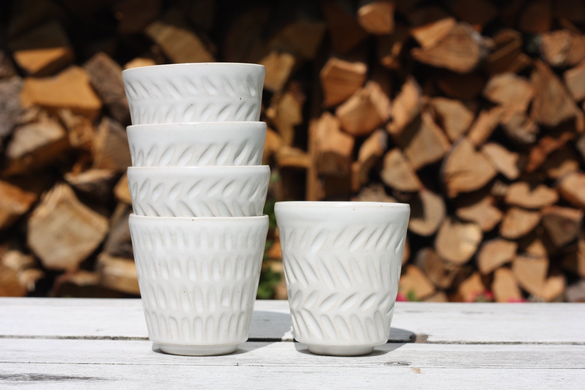 350ml 12 oz Carved Pottery Latte Cup Handle free Mug handmade stacking ceramic cup beaker tumbler L