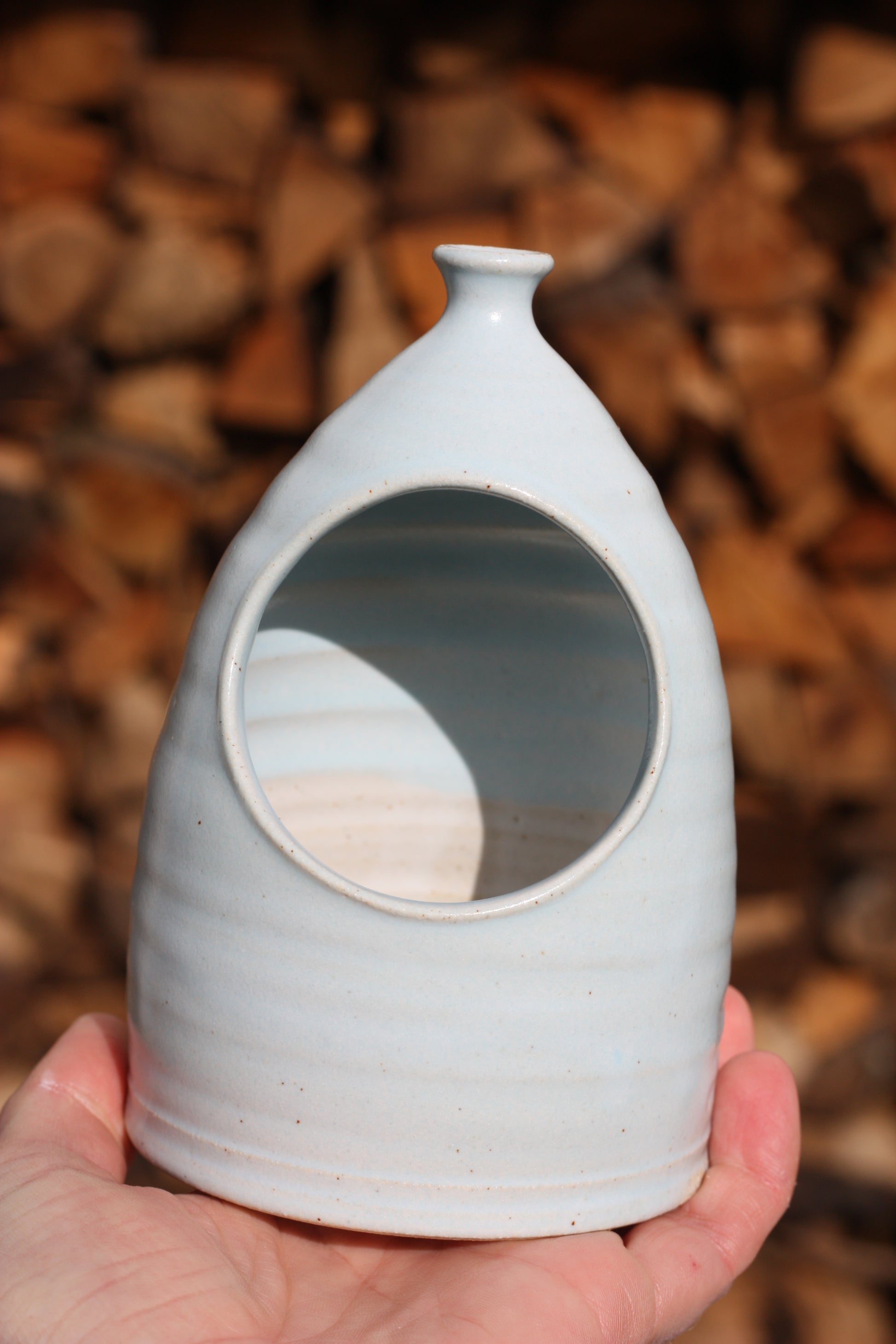 As with all my pots they are thrown on my wheel from stoneware clay, left to dry for a few days, bisque fired to 1005 degrees centigrade over 24 hours, glazed with handmade glaze and re-fired up to 1240 degrees centigrade for another 24 hours.