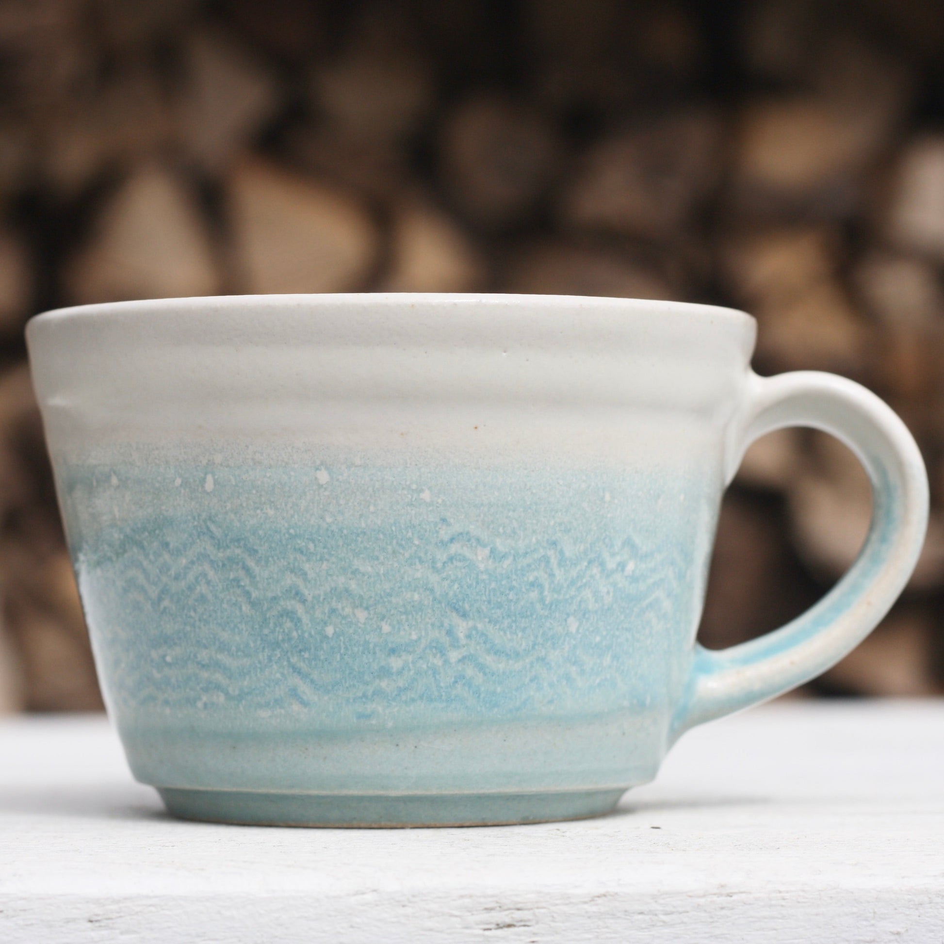 Cornish waves glazed Mug 12oz 350ml Medium Mug in Blue and White Glaze