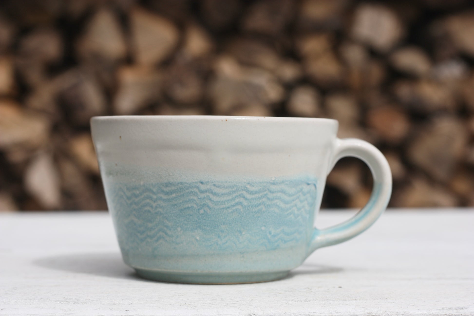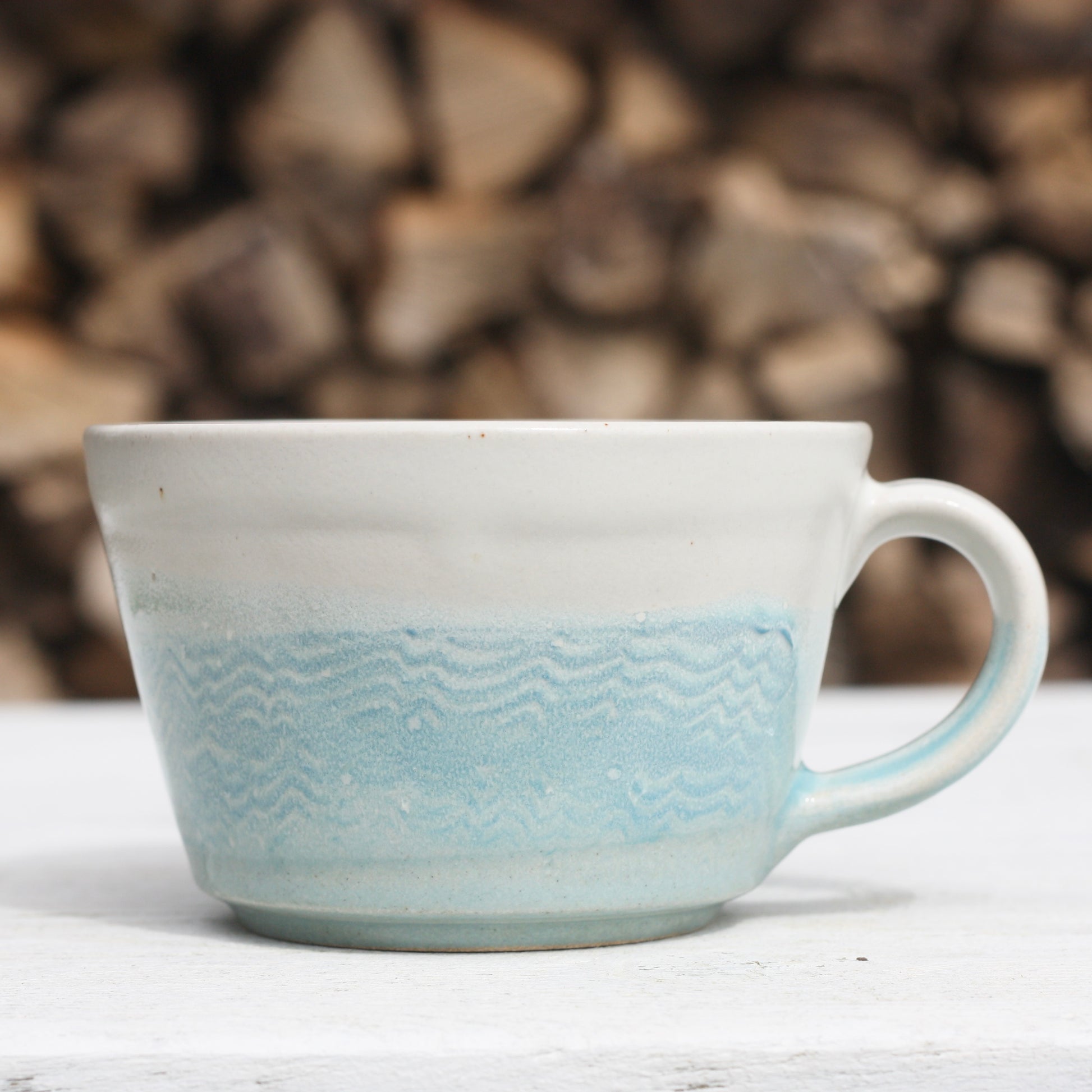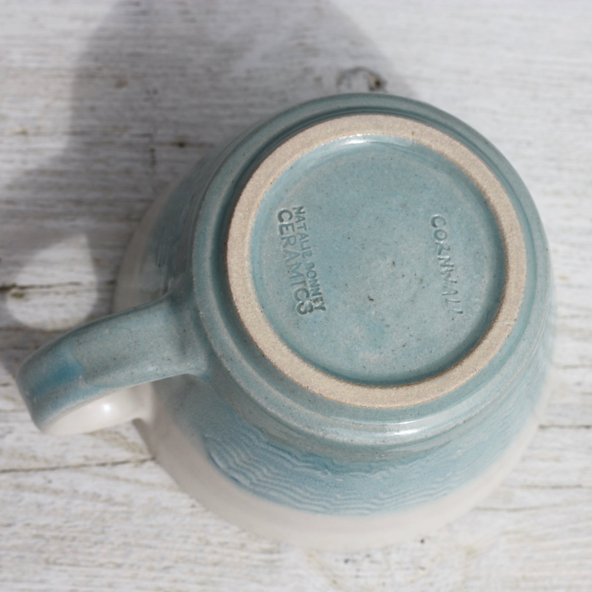 Cornish waves glazed Mug 12oz 350ml Medium Mug in Blue and White Glaze