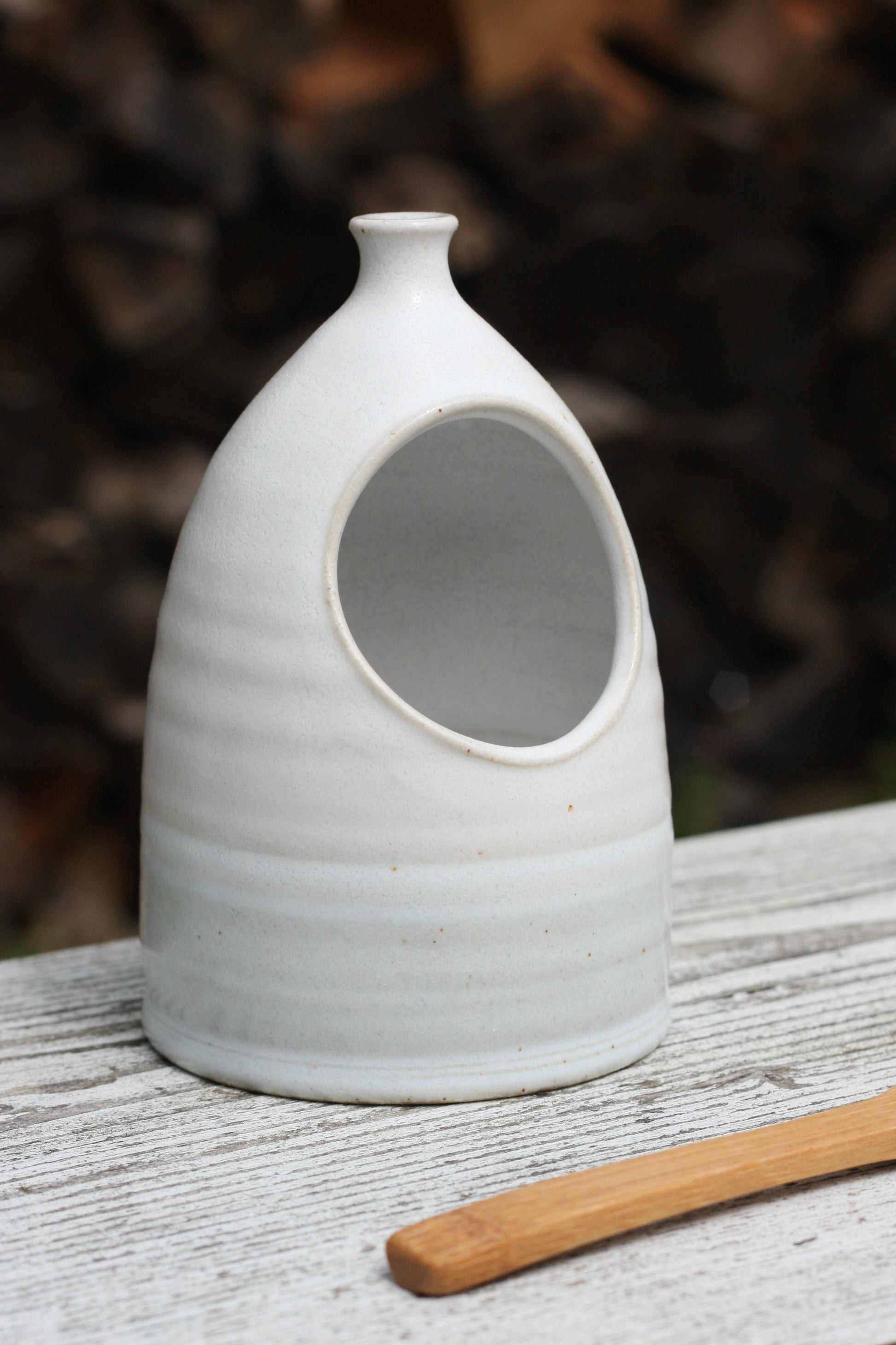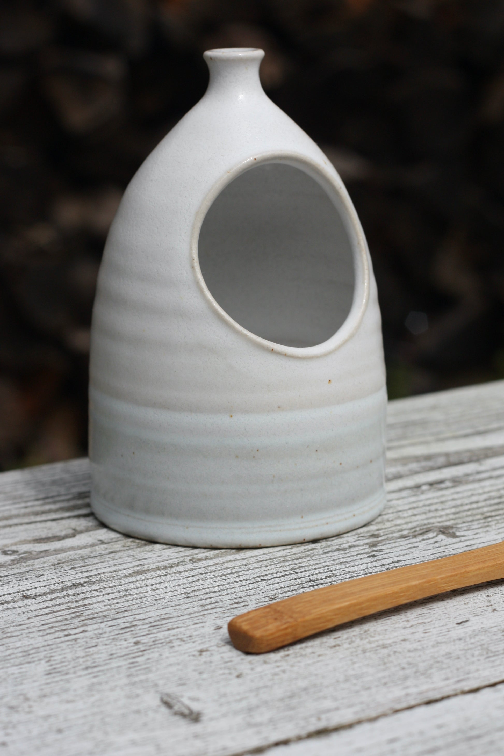I made this on my wheel using white stoneware clay.
