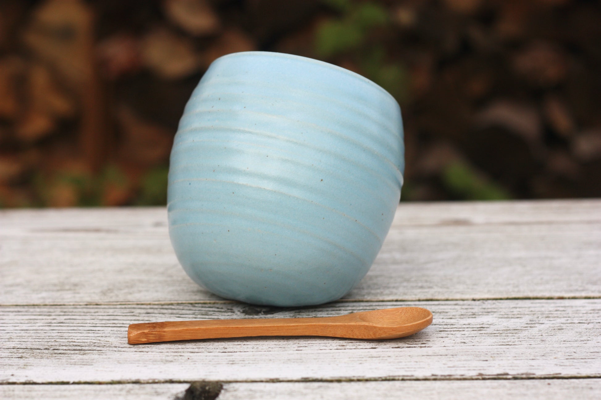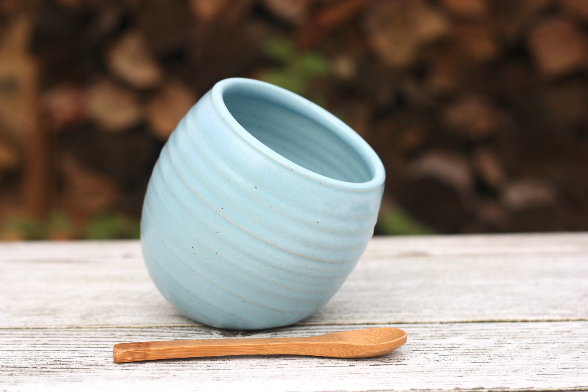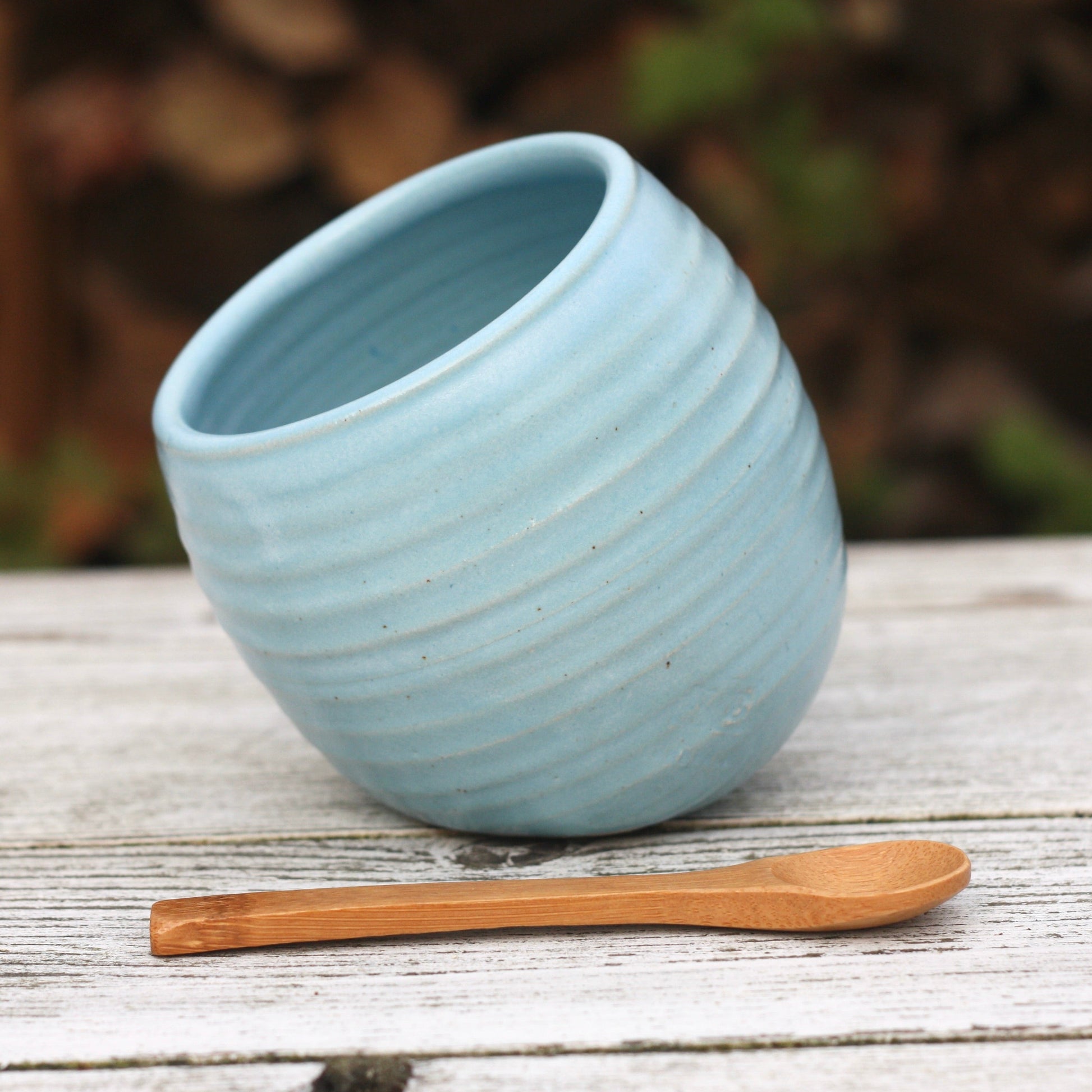 Speckly Turquoise Salt Pig and Bamboo Spoon