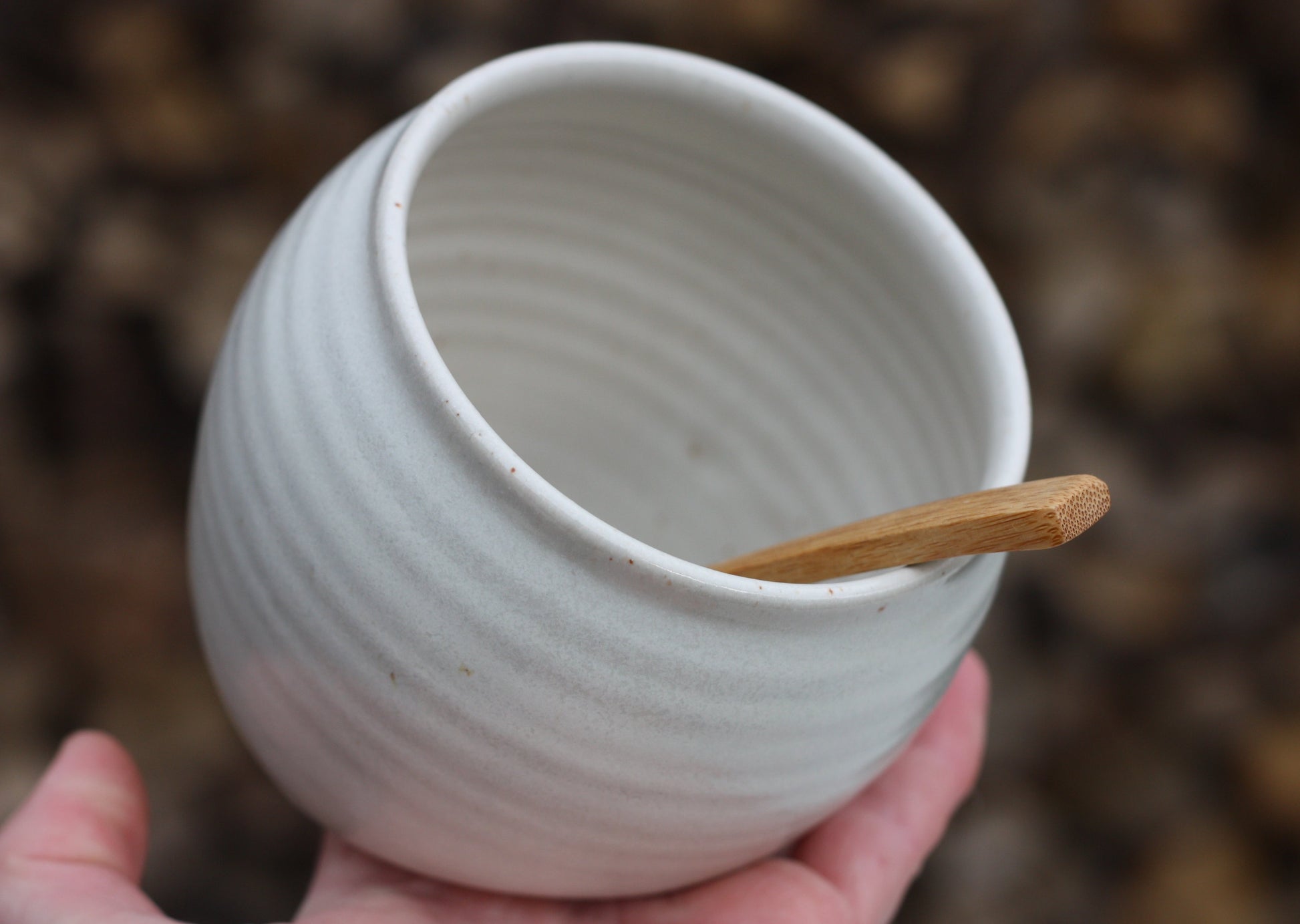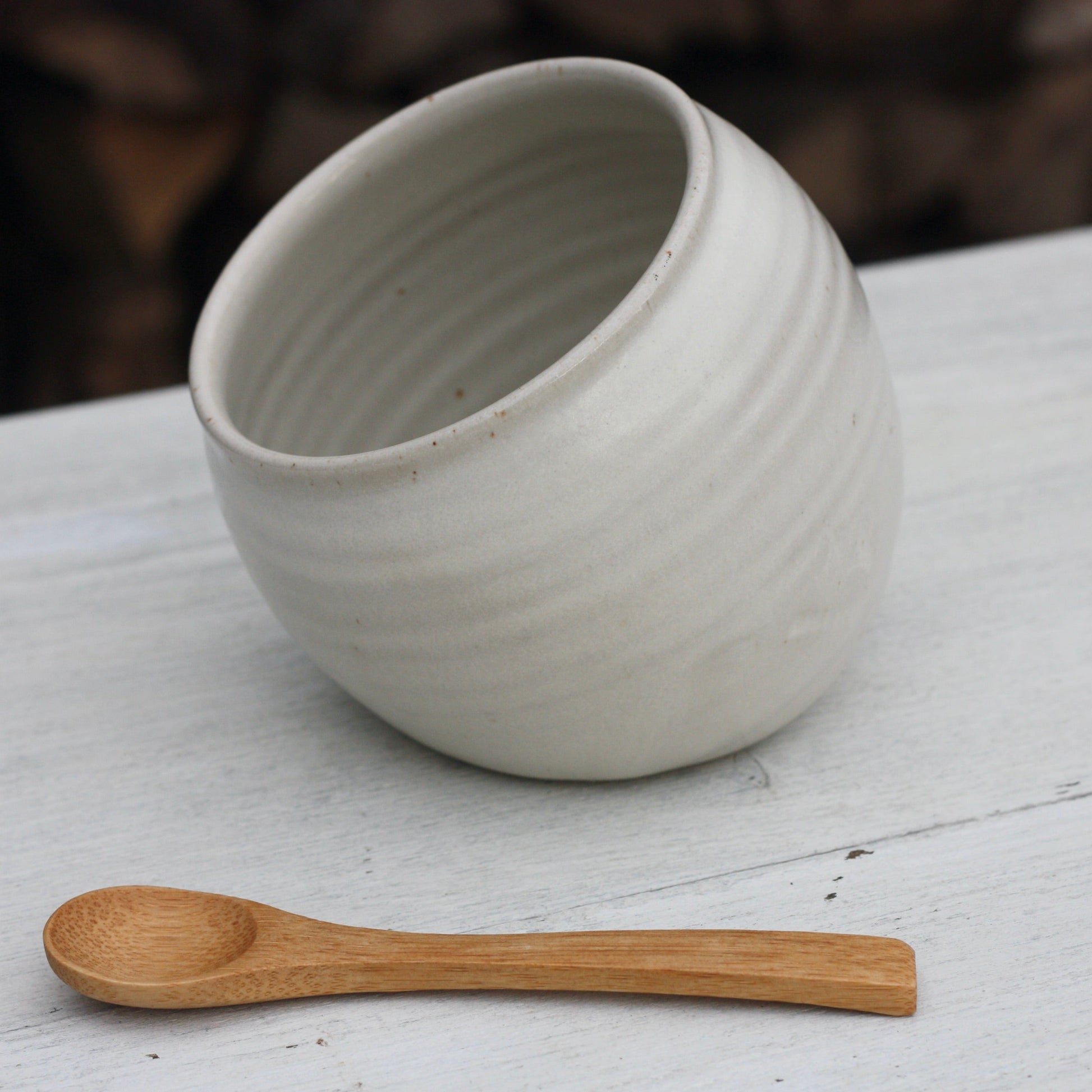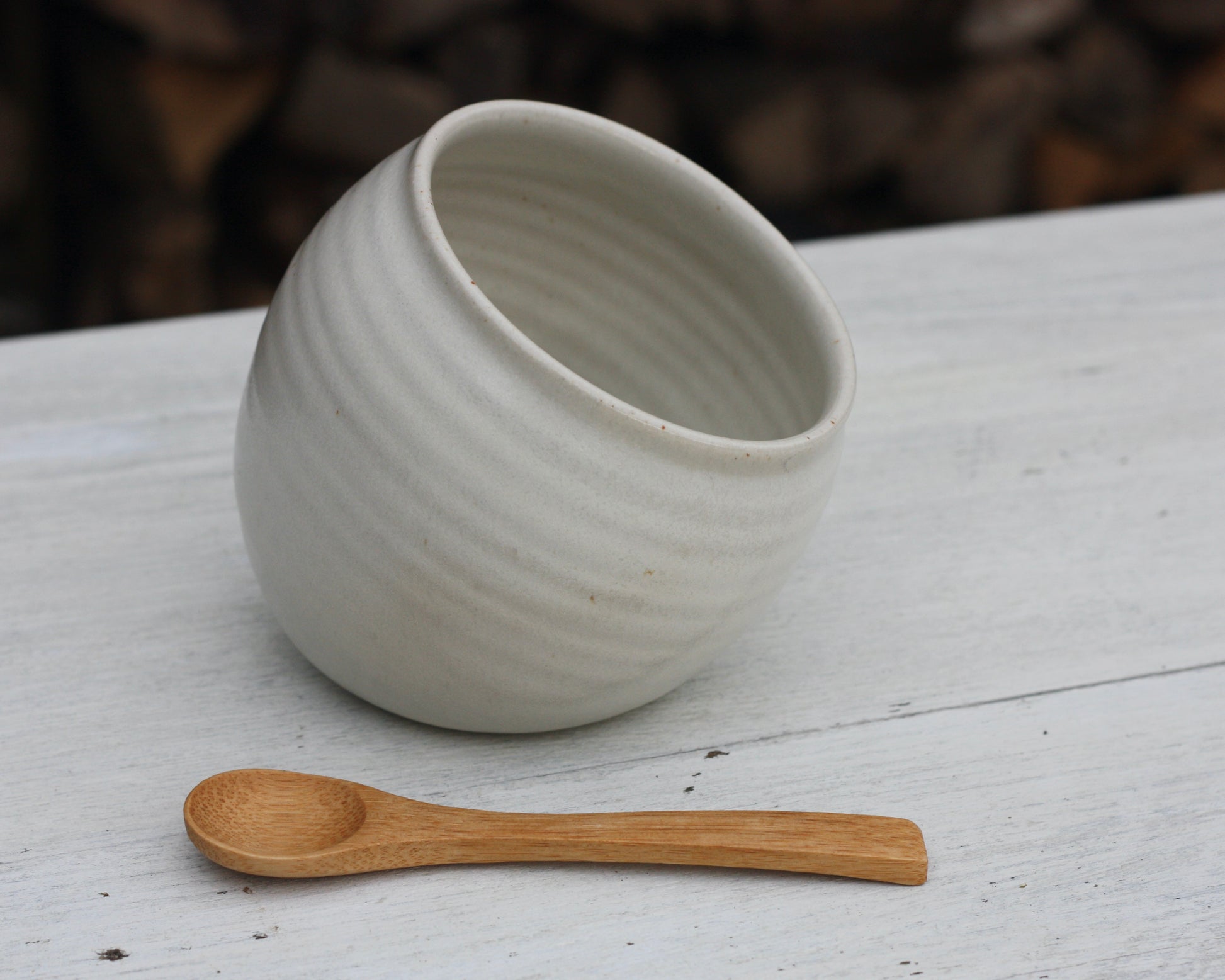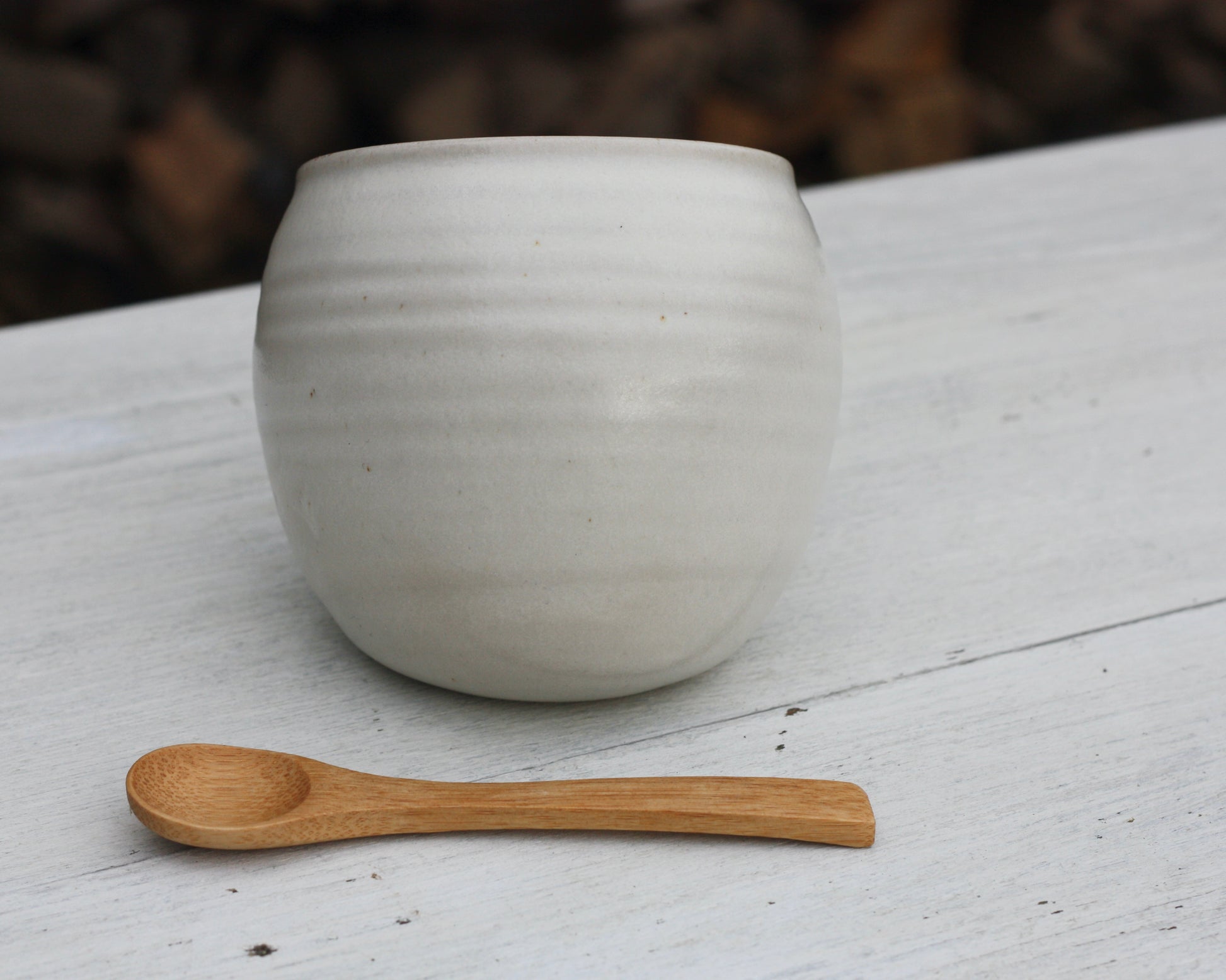 Here is a lovely creamy white Salt Pig hand thrown by me.