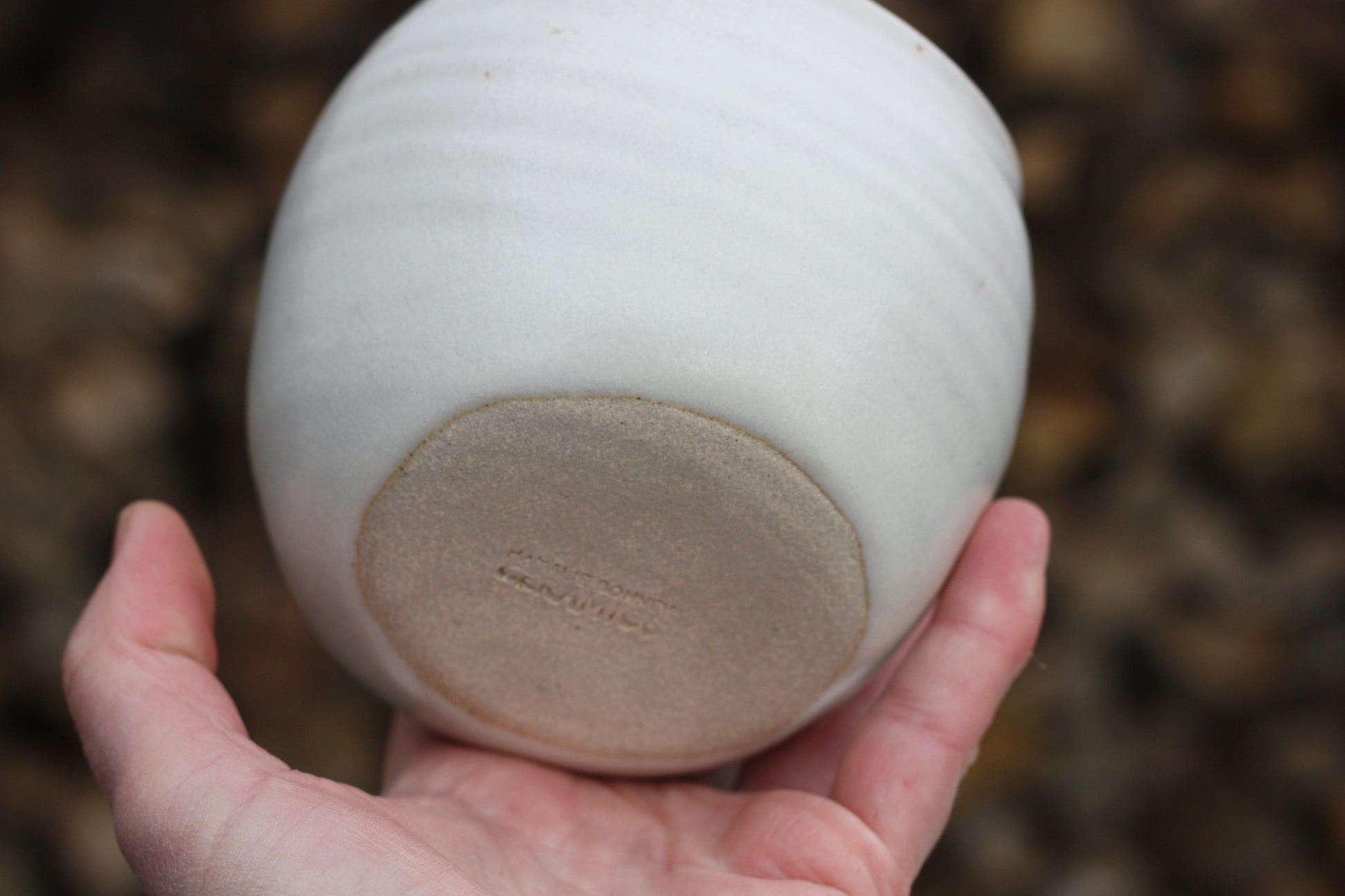As with all my pots they are thrown on my wheel from stoneware clay, left to dry for a few days, bisque fired to 1005 degrees centigrade over 24 hours, glazed with handmade glaze and refired up to 1240 degrees centigrade for another 24 hours.