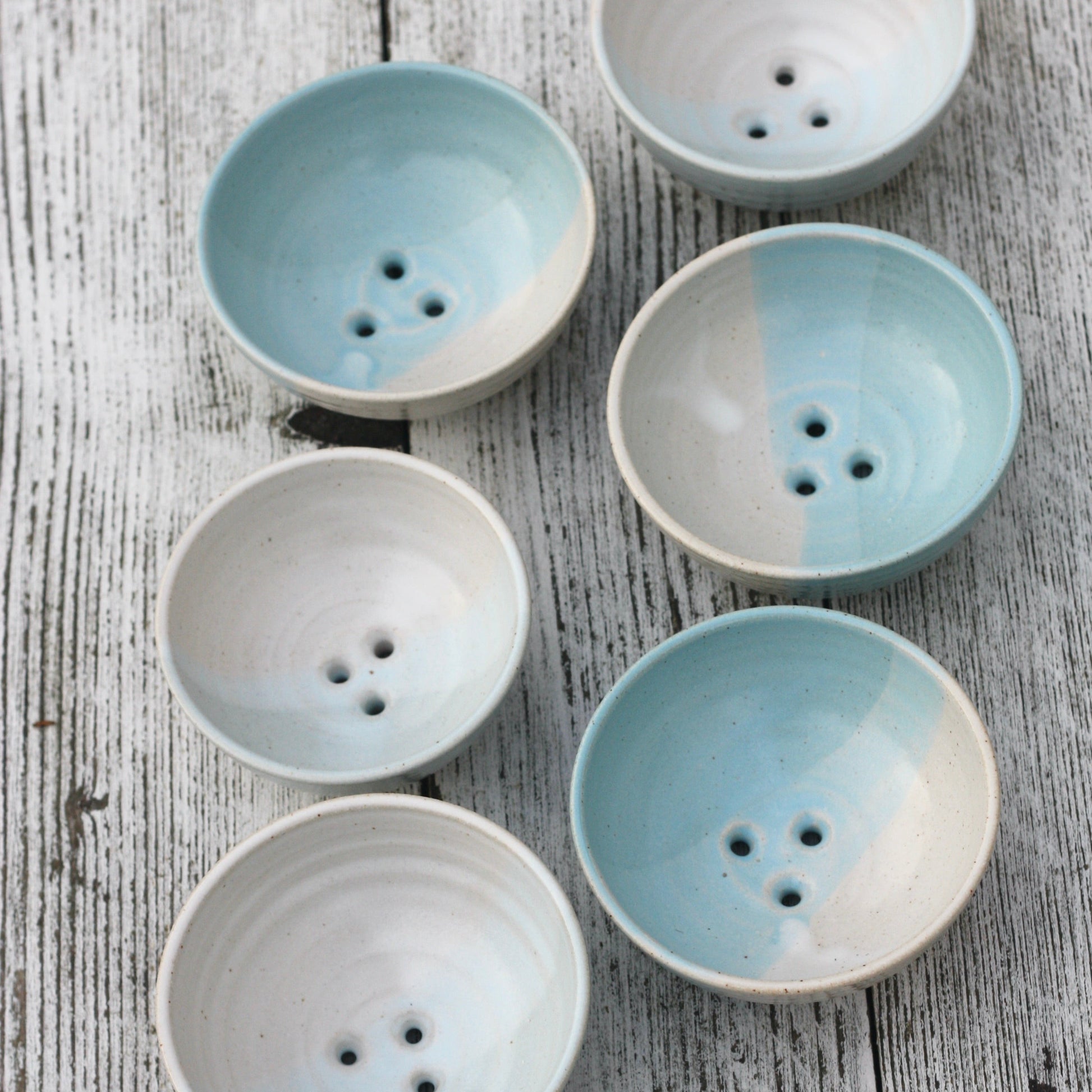 Soap Dish in Soft Pale Celadon Blue and White Glazes